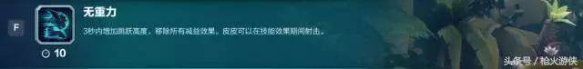 描 述:3秒内增加跳跃高度,移除所有的减益效果,皮皮可以在技能效果期间射击