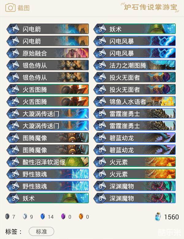 闪电箭:能够帮助你解场,对阵龙系卡组,或者内战,其它快攻卡组都很有用,不过对阵德鲁伊就没用了。