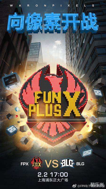 赛前,FPX俱乐部更新微博,发布本期比赛海报:向像素开战。
