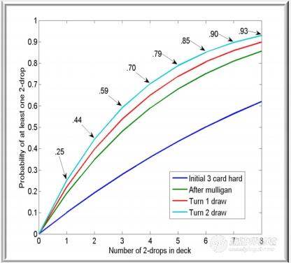 我不知道大家起手的留牌习惯是怎样的,对于我来说,不管起手其它卡牌如何,我一般都会将3费和两费的随从至少留下一个。而除非起手234这样的天胡开局,我都不会讲4费随从留下来。那么从上面的计算方式来看,我们在计算概率的时候都是以起手摸到会留下为前提的,如果我们起手摸到而要换掉的话,那么从概率上来说我们按时摸到他们的概率就会降低约三分之一左右(针对4费)。正是如此,我们就需要更多的抓取一些4费随从。