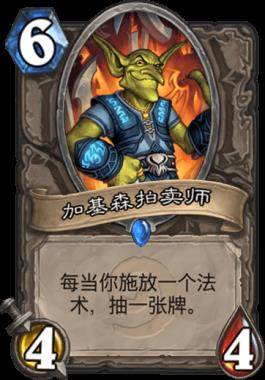K&C并没有太多对这套牌的改进,唯一的一张新卡就是法术玉石,这张卡费用很低,可以用来配合加基森拍卖师,由于现在天梯充斥着节奏卡组与快攻卡组,即便是第一形态的法术石打出去也可以接受,在对阵慢速卡组时,你可以把它留着直到可以用一费打出六点伤害。