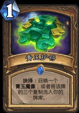 对阵快攻卡组时,也绝不要洗护符,快攻一般都很难处理5/5或是6/6的青玉,8/8的青玉都直接无视掉,由于在这种对局中,节奏非常重要,你一般也会让第二张护符直接长成一个魔像。在对阵控制型卡组时,你需要尽可能的洗剩下的护符,因为8/8明显不足以打死对手,当有艾雅的时候可能需要考虑洗牌的抉择,没有的时候一般都是要洗。对阵中速卡组时的抉择最为艰难,一般都要结合实际情况考虑,如果你场面已经落后,或者你需要加大压力,就召唤一个青玉魔像,一个额外的随从(假设是6/6)会对场面有巨大的影响,很可能主宰比赛的胜负,如果想要用无尽的青玉大军来取得胜利,那么可以考虑洗护符。