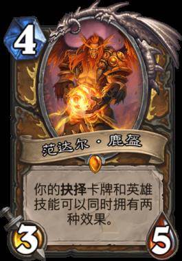 范达尔鹿盔——范达尔不是必须的卡,但是它对于卡组提升很有帮助,有时候,如果你的对手解不掉他,那就直接赢得比赛胜利了。4费曲线时范达尔是最强压力卡,如果你的对手解不掉,5费时你的滋养就赚翻了,既获得了两个水晶,又抽了3张卡,然后还可以立即用多出来的两个水晶打出4伤的愤怒,再抽一牌。他也可以在后期用来配合青玉护符,既召唤了魔像,又洗了护符,给足压力又获得了无尽的后续青玉大军。