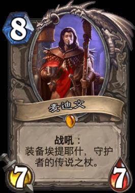 守护者麦迪文——如同王库恩,他麦迪文也可以配合终极感染,由于你有不少高费的法术,很容易召唤很多大哥赢得比赛,麦迪文加终极感染无比强大,配合传播瘟疫也很强,就算是只能配合滋养或者横扫也不错了,虽然招出来的随从只有中等身材,但是也很能拉动节奏了,在面对不战场的卡组时这张卡也盘活了传播瘟疫,至少还能召唤一个6费的随从。