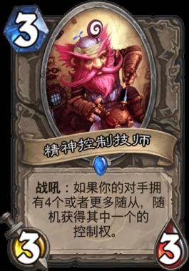 精神控制技师——由于德鲁伊对于大量站场没什么好的解决手段,只能依靠传播瘟疫来被动防御,TC130可能是个很不错的选择,在后期,你可以用传播瘟疫挡住大量对手的随从,还能用130抢走其中一个,在早期和中期也可以空下,抢多一点场面,只要能抢到一个1/1都还算可以了,能抢到对面的大哥就跟中奖一样。