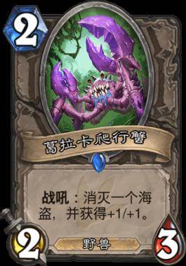 葛拉卡爬行蟹——海盗卡到处都是,甚至没有一个职业没带过海盗体系(多亏了帕奇斯),所以葛拉卡爬行蟹真的很适合针对,又能解场又能站场。