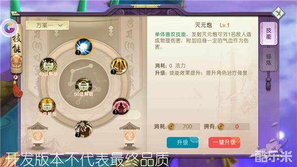 灭元炮:发射灭元炮可对1名敌人造成物理伤害,附加自身一定的气血作为伤害。