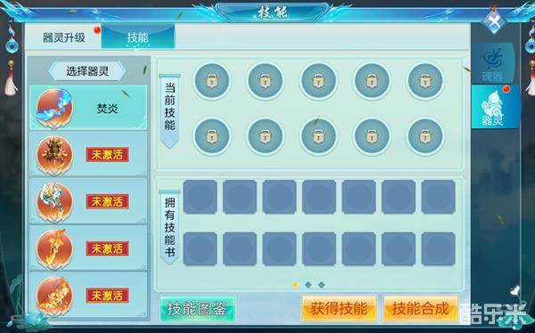 器灵技能使用物品“鉴定卷轴”来获取,鉴定卷轴可以从商城购买。