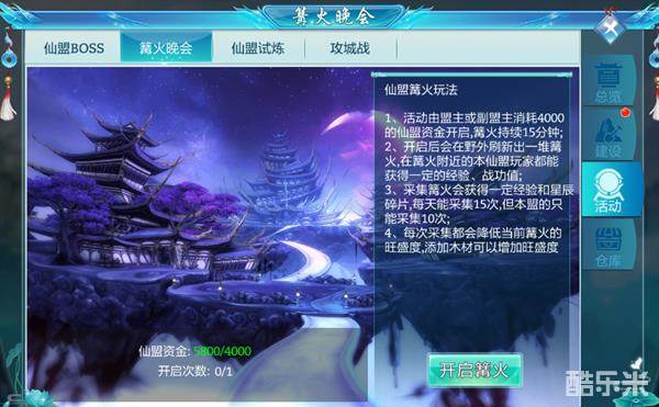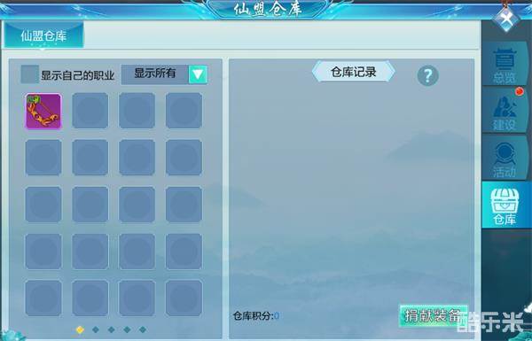 仙盟活动更是丰富多彩,和朋友一起参加吧,经验、时装应有尽有如果你有不是自己职业的装备可以捐献给仙盟仓库获得仓库积分,仓库积分可以从仓库拿出装备等其他物品!