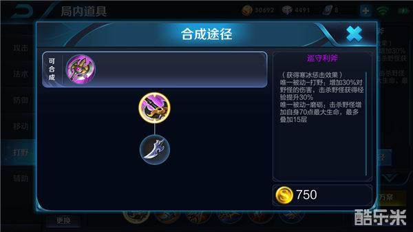 巡守利斧:娜可露露作为打野英雄,也有很多玩家会给她装备追击刀锋,但是用技能打伤害的娜可露露并不适合走攻速流,尤其是在现在的版本中,如果要强行打攻速,那可能在团战中存活的时间会比较少。所以这里我们为娜可露露选择了巡守利斧,在后期的时候其实是可以把这个装备换掉,考虑破军或者贤者的庇护,但是前期还是需要野怪发育,也需要寒冰惩击作为留住敌人的底牌。