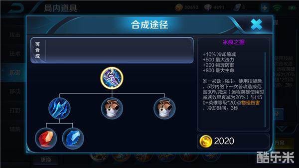 冰痕之握:冰痕之握这个装备也非常适合娜可露露,毕竟作为一个有蓝条的刺客英雄,必须要有足够的法力值支撑她来释放技能,但是在对局后期的时候为了团队的胜利,多半情况下我们会把蓝BUFF让给法师。另一方面冰痕之握能够让英雄的普通攻击减速对手,对于娜可露露来说,还有什么比留住对手更吸引人呢!