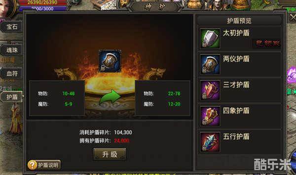护盾需要使用一定的护盾碎片兑换并升级,护盾碎片可通过每日副本,打怪掉落,商城购买,游戏活动等途径获得