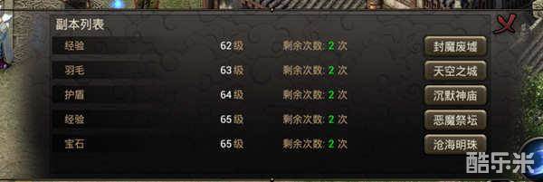 封魔废墟和恶魔祭坛为经验副本,挑战副本即可获得海量经验,在挑战前可使用多倍经验符,经验成倍哦!