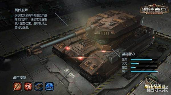 在《闪电突袭2-钢铁奇兵》中,一号位的坦克一般是留给装甲厚实的重型坦克,推荐坦克——钢铁玄武,其嘲讽、具有嘲讽技能和超强的无敌恢复能力,能给队友良好的输出环境!