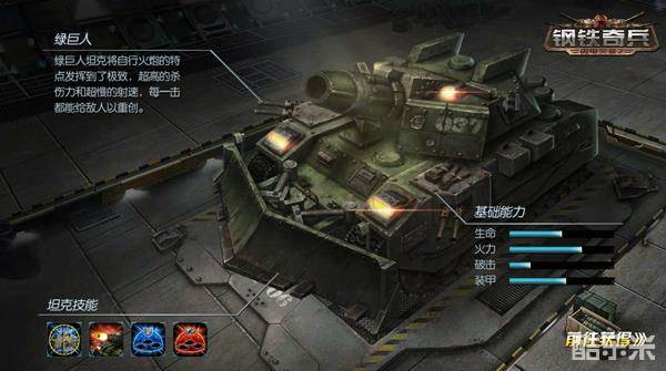 1.摧城拔寨:绿巨人坦克转换为攻城模式,大大鼓舞友方部队,使友方队伍一段时间内的火力值,攻击速度和暴击值都得到大幅提升。