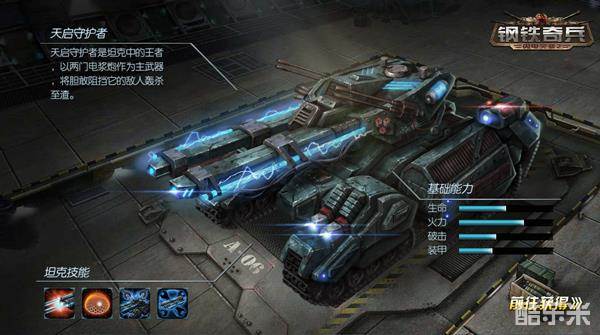 1.等离子炮: 天启守护者坦克在炮口上聚集大量能量,将核燃料激发成等离子状态并射出,对直线范围内的所有单位造成大量持续伤害,并使其短时间内无法使用任何技能。
