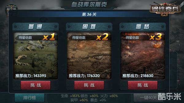 【血战库尔斯克】和主线副本一样,选择最优秀的坦克出阵。在中前期,比较流行的组合是T——奶——输出这样的中庸配置,力求最大化通关。通关越多,获益越高。然后是任命指挥官,在只有3星或者4星指挥官时,使用有被动防御技能的指挥官作为主T的配备,有定点轰炸技能的指挥官配备上其他的坦克上阵。