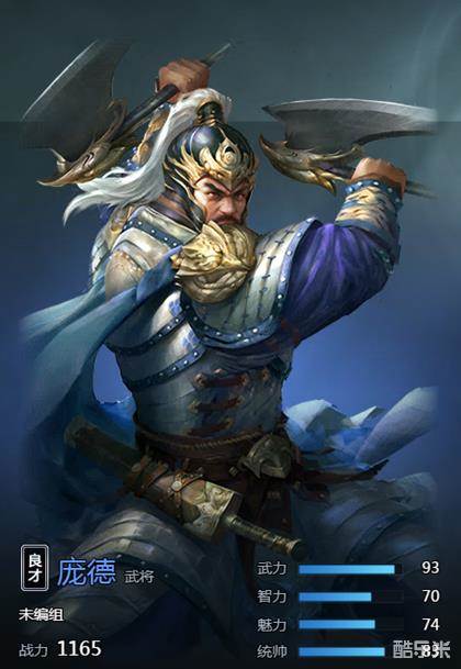 庞德(?-219年),字令明,南安郡狟道县(今甘肃天水市武山县四门镇)人,约在初平年间,投奔马腾帐下,在平定羌民的征伐中屡立战功。建安年间,庞德跟随马超征战平阳,抵御袁将郭援、高干,在马上亲斩郭援首级。张白骑在弘农反叛时,庞德也参与战斗。每次出征常冲锋陷阵,勇冠凉州三军。后几经辗转,随张鲁归降于曹操麾下,被授官立义将军,封关内亭侯,食邑三百户。