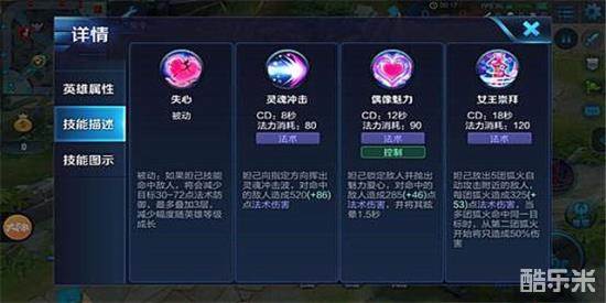 技能解析:妲己锁定敌人并输出致命爱心,造成法术伤害,并将其眩晕1.5秒。此项技能是非指向性技能,并且为硬控,控制时间较长,所以可以成为团战中的主点技能,可以配合队友更好的游走、抓人、先手开团,配合高爆发打野英雄可以在前期就能打出很好的效果。