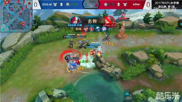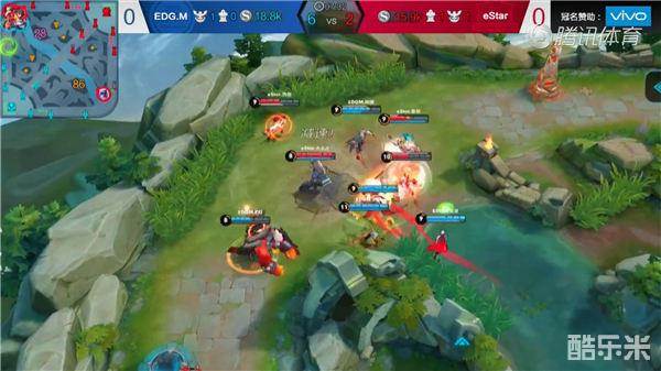 在一场EDG.M与eStar的比赛中,双方选择在上路进行团战,随后EDG.M的韩信入场,先是用自己的一技能将敌方的老夫子击飞,而后利用自己的被动技能,释放技能之后增加的攻击速度来攻击李元芳,此时的老夫子想要逃跑,韩信趁机释放自己的二技能,在接近了老夫子之后,利用二技能强化后的普通攻击将老夫子打成了残血,紧接着将老夫子收割,而后李元芳也想要逃跑,但是被韩信打成残血,随后被哪吒收割掉。