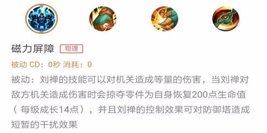整体分析:刘禅的核心技能,技能可以对防御塔造成等量的伤害同时恢复生命,这使得刘禅的拆塔速度无比恐怖,因为防御塔是有这防御机制的,其他英雄的攻击会受到免伤效果的影响。而且还能造成短暂的干扰效果,让塔短时间无法进行攻击,这非常有利于越塔杀人。