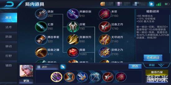 暗影战斧+急速战靴+破军+破甲弓+泣血之刃(可换)+末世(可变)