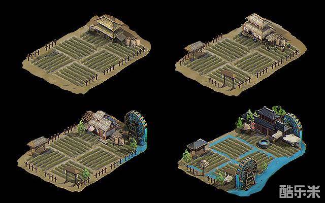图7(粮食)农庄升级后将出现草棚和水车
