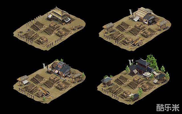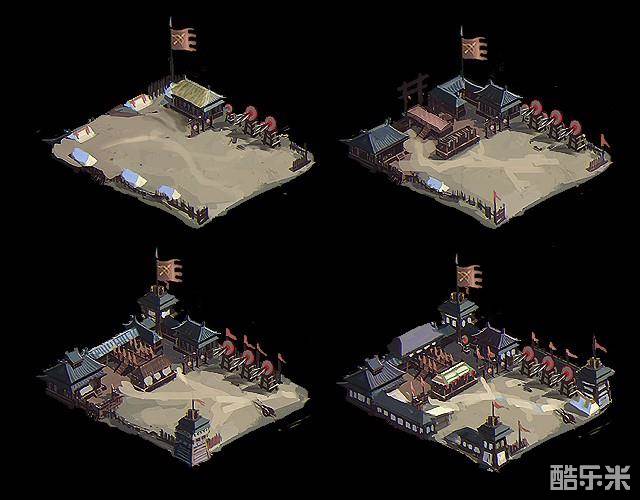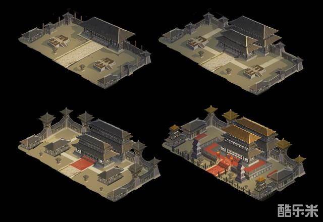 因此,随着封地建筑等级提升,会有不同的外观视觉表现。以下为新游戏版本中的封地建筑草图,请明公过目,先睹为快