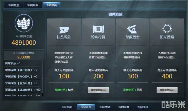 任人唯亲——军团长可以通过军团仓库为亲信发放黄金奖励