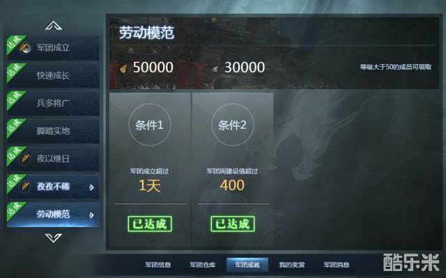 军团在建立之初就有了各项成就追求,在给予小目标的同时,给军团成员更多奖励