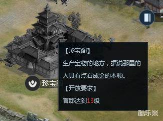 《三十六计》的网页游戏中,封地中的珍宝阁需要官邸在13级,方可开启。