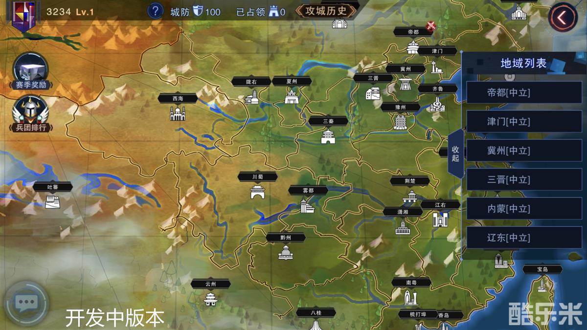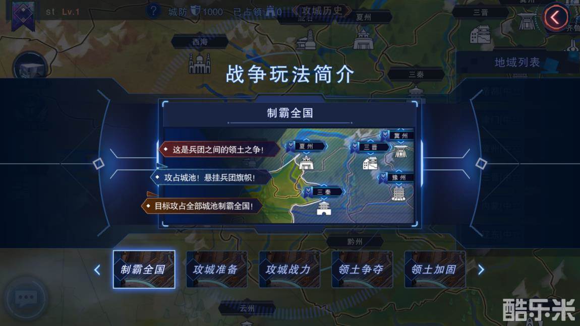 以佣兵团系统为基础展开的“全国争霸战”策略类玩法也是创意十足。该玩法地图中,城池分为大、小两种,每个大城内会有不同数量的小城,活动开启后需要选择一个大城作为自己的“根据地”,点击不同的名称可以进入对应的大城内查看城池的占领情况。占领一个大城内的所有小城池才算“统一”该城,统一后即可攻占其他大城池。