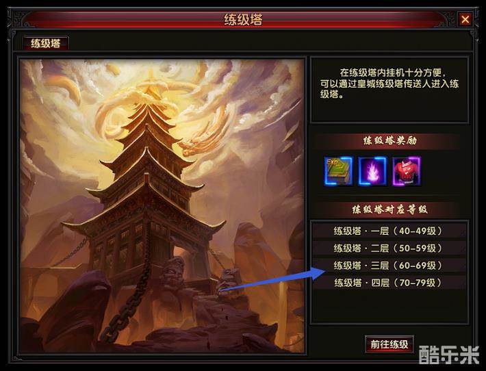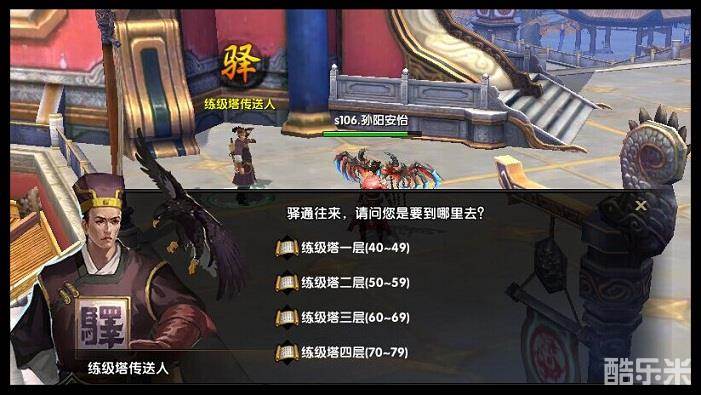 点击前往练级按钮,将会自动寻路到NPC练级塔传送人身边。与NPC对话,就可以选择进入练级塔哪一层。