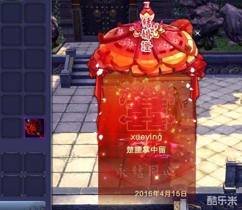 结婚后,双方获得道具“同心结”,即双方结婚的证明——结婚证。