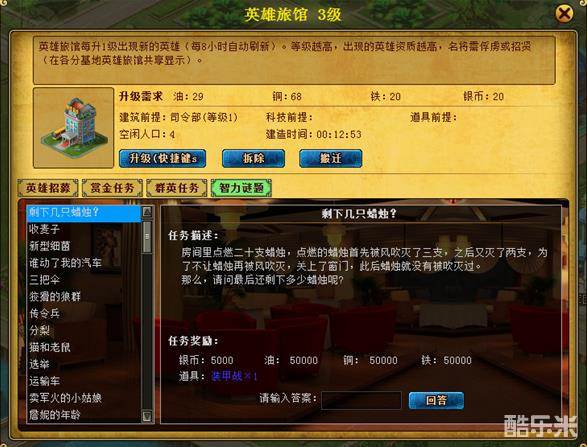 进入旅馆中有很多功能选项,除于英雄相关的之外,还有一项答题。答题的奖励异常丰厚,甚至某些道具在游戏后期也十分重要。