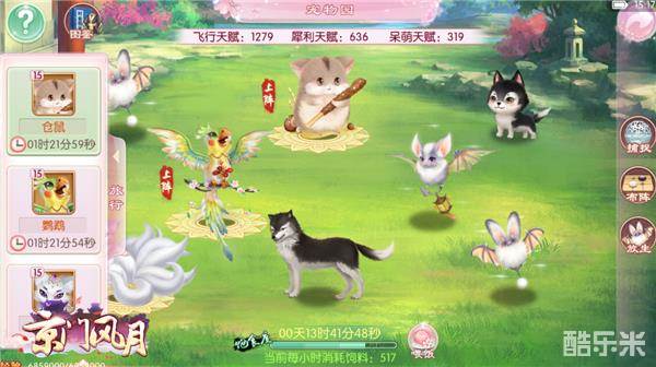 捕捉到的小宠物们被饲养在别院的宠物园中,可以随心为它取名,也可以进行玩耍、外出、进化、放生等操作,见证这些可爱生灵的成长,也是件极有成就感的事情。有了宠物以后,也相当于有了半个孩子,每天要记得准点喂养,饥饿状态下的小家伙们不仅没有精神,而且参与出战属性大减,并且也没有办法获得经验。这些小可爱虽不直接参与战斗,却可以通过影响上阵暗卫的属性来影响战斗,进一步提升实力的机会就在眼前。
