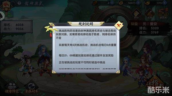 少侠可在封神演武中任选一名玩家进行挑战,挑战胜利后玩家的封神演武排名将会与被击败的玩家进行兑换,如果败者的排名低于胜者时,则排名会保持不变。当一名玩家被挑战时,其余玩家不能同时选中该名玩家进行挑战,需等到战斗结束方可继续选中进行挑战。