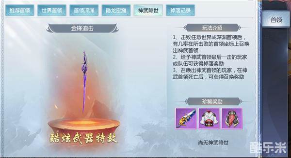 2.给予神武首领最后一击的玩家或队伍可获得掉落奖励;