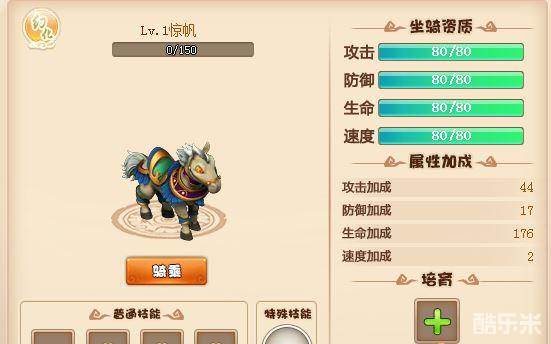 在乐蜀三国中,由于版本的大更新,坐骑玩法改得更是让不少玩家摸不清头脑。但其实对于坐骑的玩法,还是相对比较简单的。首先,将此次维护的补偿邮件取出来,将马牌都开完;然后会得到很多不同类型的坐骑,比如惊帆、青骓、的卢等一系列的坐骑形象,这些坐骑是用于提升坐骑的资质同时可以进行幻化,换句话说只要拥有了该坐骑的外形,可以随意挑选并幻化且能提升它的攻击、防御、生命、速度等属性资质;当坐骑资质满属性时就无法再进行培育(只有升级坐骑得到更多上限才能继续用坐骑培育资质),使用特殊坐骑则可激活特殊技能,在战斗中可更好的协助玩家哦!