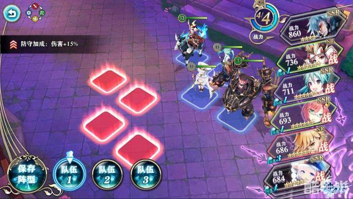 在排兵布阵环节我们需要分别设置三支队伍。用于防御敌方对己方的进攻。