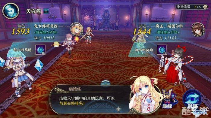 如图4所示,在天守阁的角逐界面,会看到5名排名在你之上的玩家,击败他们就可以与其交换排名了哦。