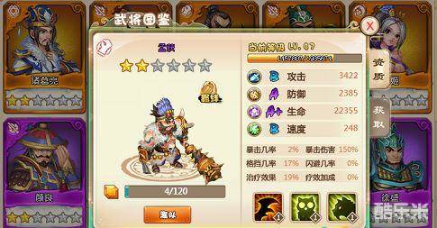孟获:召唤类武将,虽然他的能力大部分来自召唤的猛兽加成,但是三种不同的猛兽加成,会让他在战斗中产生独一无二的绝佳特效!