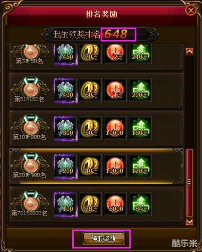 武林大会为玩家提供了一个展示自身实力的地方,玩家可以通过挑战其他玩家来提升自己的排名,每日零点将会结算前一天的排名,玩家根据自己的排名领取奖励。