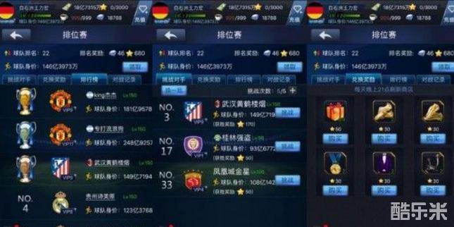 玩家在到达150级之后,就可以参与iOS平台或者安卓平台的跨服排位赛,在跨服排位赛当中,我们可以挑战排位比自己靠前的玩家。排位赛分为主动进攻和被动守擂,主动进攻对方球队并挑战成功,排名将与对手替换上升,而挑战失败,则排位不变。被动守擂,防守成功,排位不变。 挑战成功者将获得丰富的奖品,跨服排位赛是教练精修材料(教练精修)产出的重要途径,每天21:00系统将针对当前排位赛排名情况,发放大量的精修材料和钻石奖励。