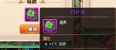 当然,如果资质满,就只能先升级坐骑等级再使用相关道具培育,一般四叶草可加3-5点某两项资质,而三叶草则是增加1项哦!