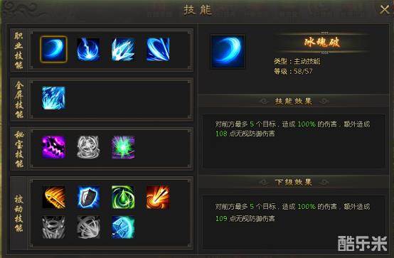 功能分类:职业技能、怒气技能、秘宝技能、被动技能