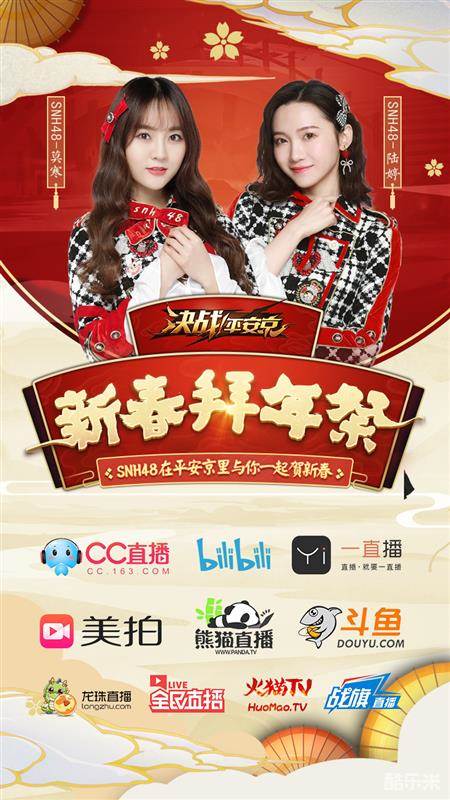 2月11日15时,SNH48组合人气成员莫寒、陆婷将强势入驻《决战!平安京》,携手玩家高手,与现场的幸运粉丝们一起为大人们献上一场福利满满的“平安京新春拜年祭”直播秀!网易CC直播、一直播、美拍直播、bilibili直播、熊猫直播、龙珠直播、斗鱼直播、战旗直播、全民直播、火猫直播十大平台将全程直播,观看直播还能抽取海量新春红包福利!