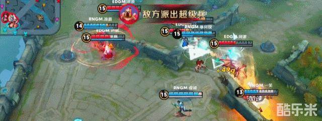 开局15分钟,EDG.M率先拆掉RNG.M上路高地塔顺势进攻中路发生团战,RNG.M达摩在前排抗伤害,诸葛亮紧跟其后极限收割。他二技能先踩两步深入敌方后排直接击杀对手输出位,随后迅速开启辉月挡掉致命伤害,再击杀曹操,最终虽身死,但诸葛亮这波团战是RNG.M至关重要的翻盘点。