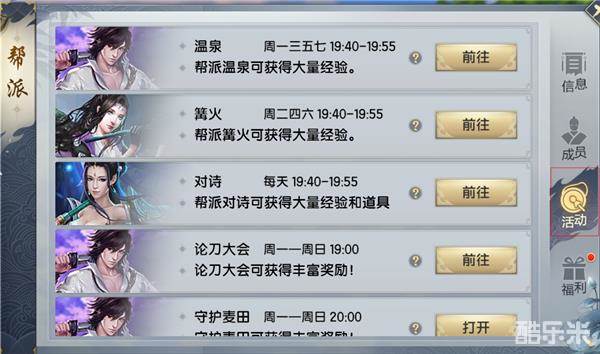 帮派系统中每天都有大量的帮派活动提供给玩家。