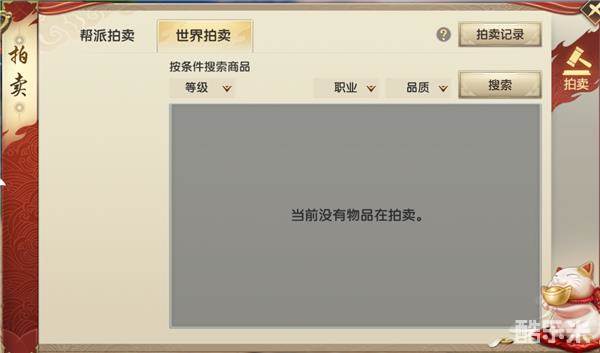 世界拍卖的竞价、一口价与帮派拍卖基本相同,帮派拍卖中的物品流拍后进入世界拍卖。